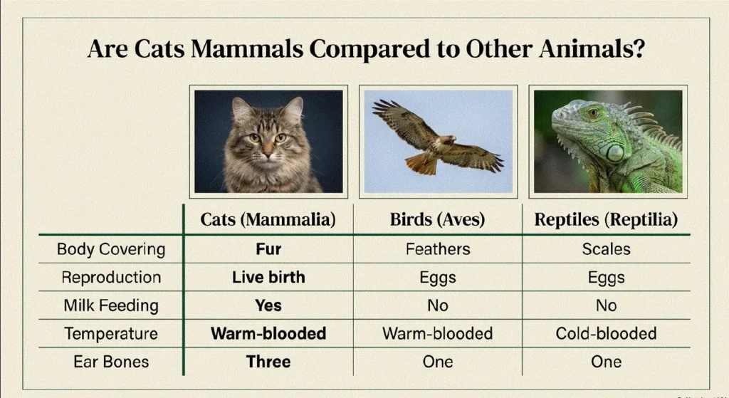 To better understand are cats mammals, let’s compare them with other animal groups.