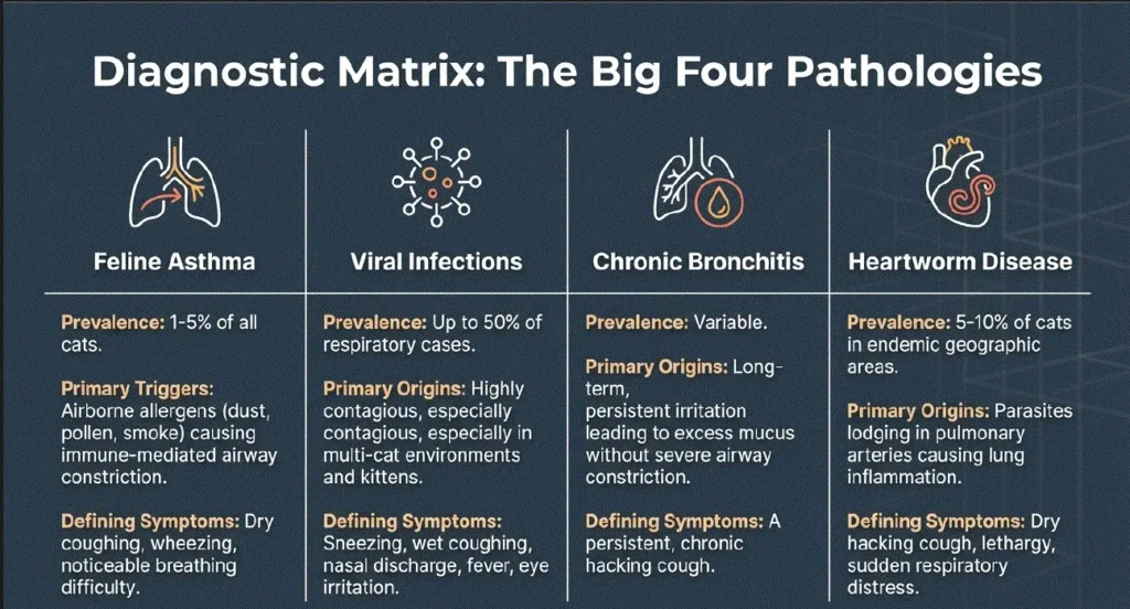 Research in feline respiratory medicine shows that respiratory diseases such as feline asthma affect approximately 1–5% of cats globally, making them one of the most common causes of chronic coughing in cats. Veterinary institutions and clinical studies emphasize that recognizing the early signs of respiratory illness can help prevent serious complications.