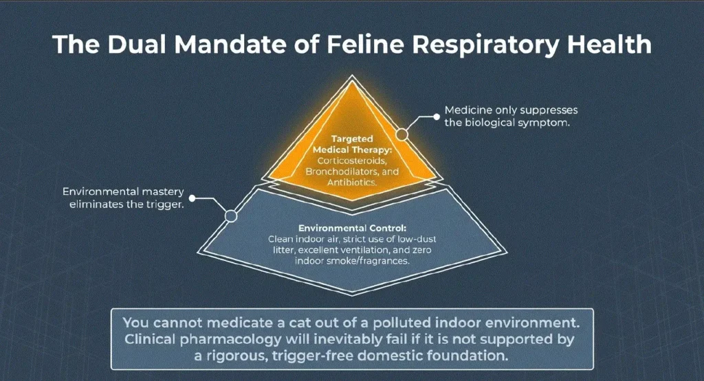 Veterinarians also recommend avoiding smoking indoors and using low-dust cat litter to protect cats with respiratory sensitivities.