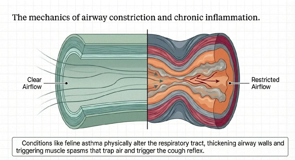 Feline asthma is another major cause of coughing. This chronic condition causes airway inflammation and constriction, leading to coughing, wheezing, and breathing difficulties.
