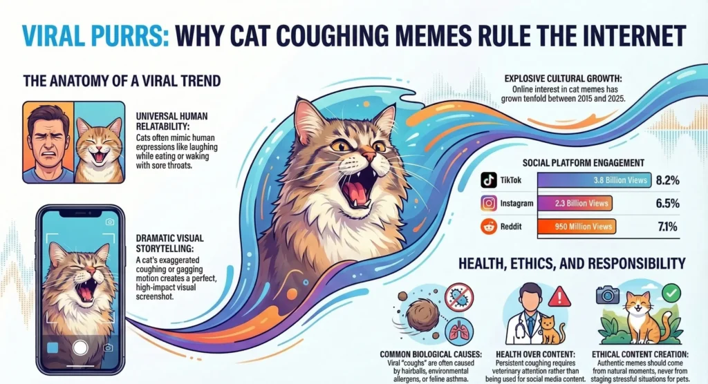 These numbers illustrate how strongly audiences respond to pet humor online. The cat coughing meme fits perfectly into this ecosystem because it is simple, expressive, and easy to share.