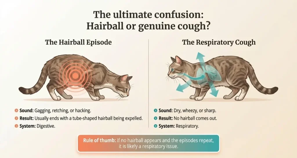 One of the biggest confusions among cat owners is the difference between a cat coughing sound and a hairball episode.