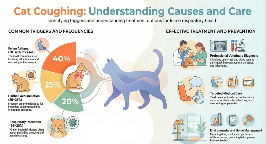 However, persistent coughing should not be ignored because it may be linked to conditions such as asthma, respiratory infections, allergies, parasites, or hairballs. Identifying the reason behind the cough is the first step toward effective cat coughing treatment.