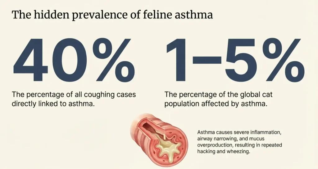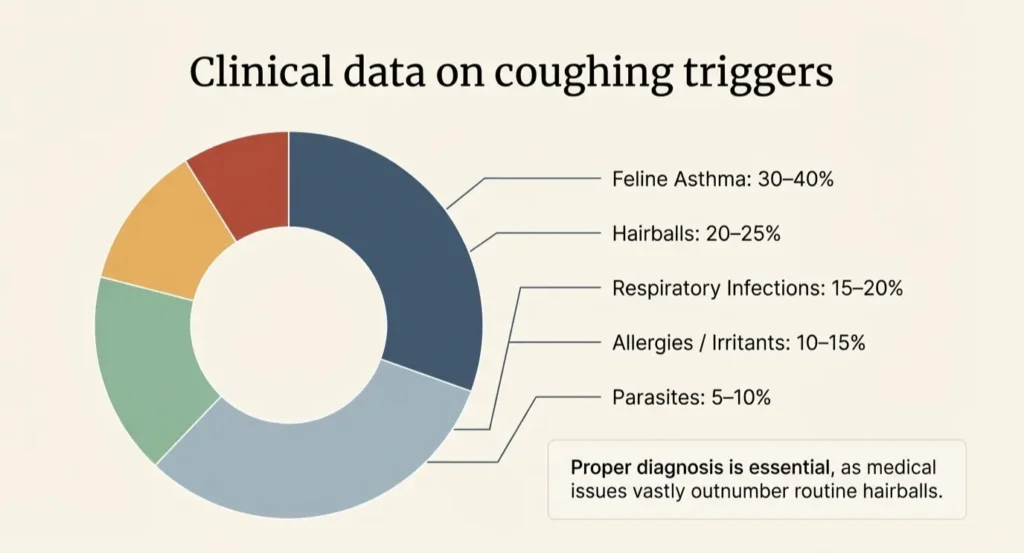 This table shows that asthma and hairballs are among the most frequent triggers, which is why proper diagnosis is essential for choosing the right cat coughing treatment.