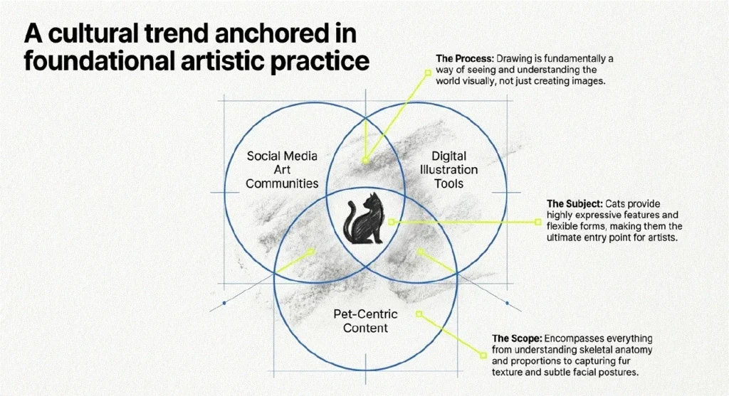 The popularity of cat drawing has surged due to: