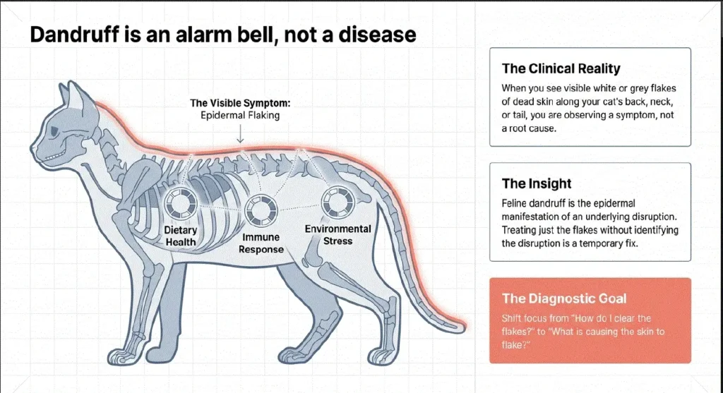 Understanding why my cat has dandruff is essential for proper treatment. Below are the most common causes supported by veterinary research.