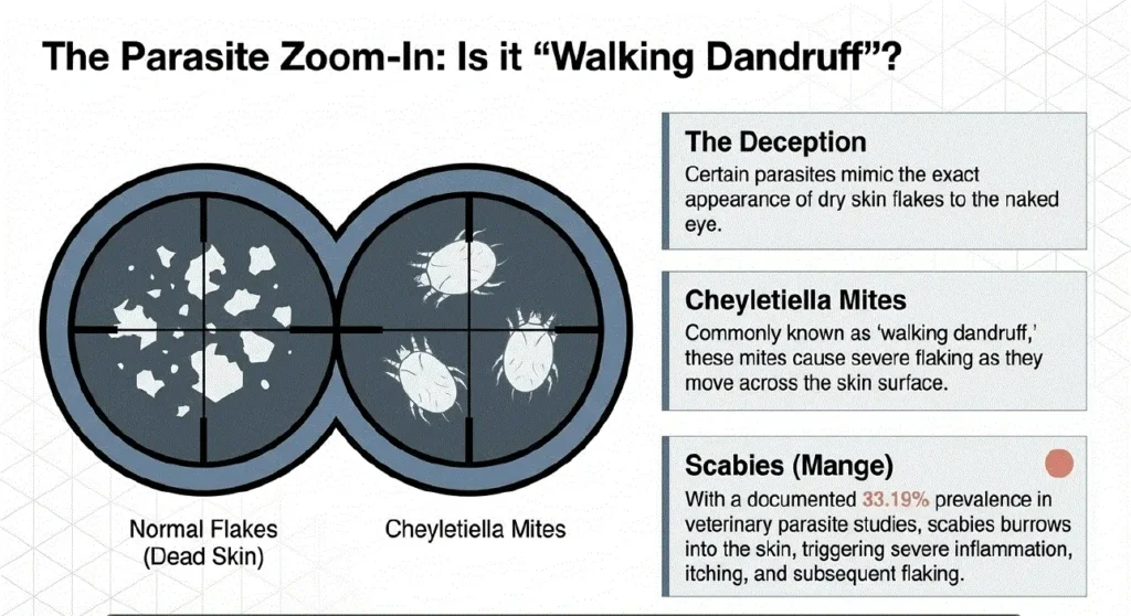 According to veterinary-reviewed sources, mild dandruff is usually harmless. However, excessive flaking can indicate skin disease, poor nutrition, or underlying health issues.