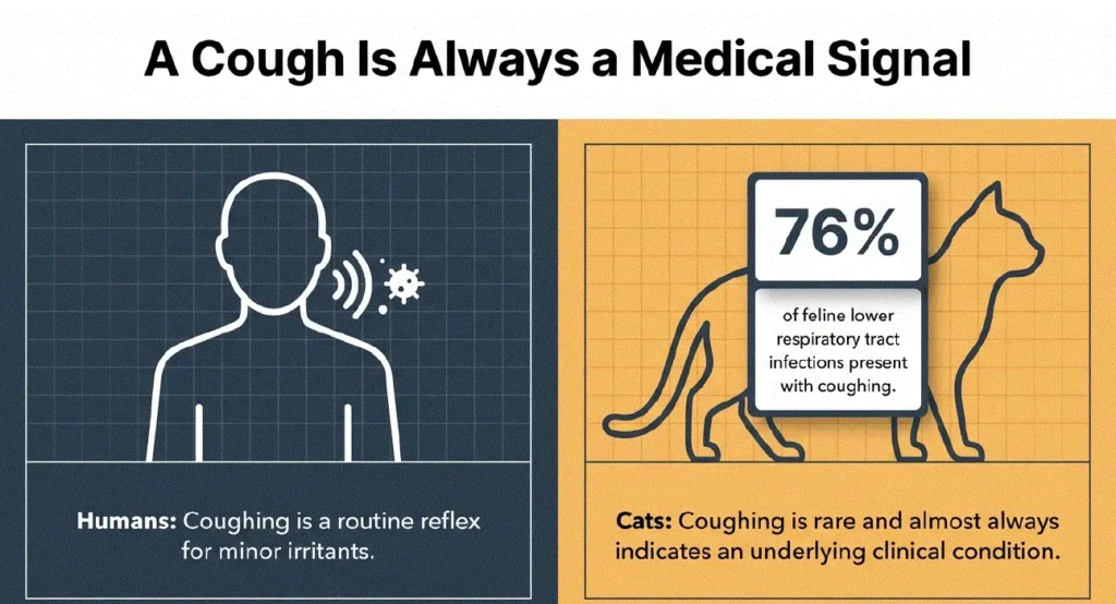 Veterinary studies show that coughing is one of the most common presenting complaints in feline respiratory diseases, appearing in up to 76% of lower respiratory tract infection cases .